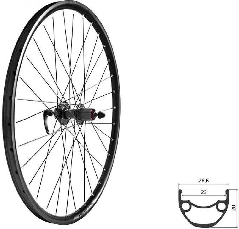 Zapletené kolo KLS Draft zadní ráfek 26" 559 RU DSC 23 32 dir 8-11k black Zapletené kolo KLS DRAFT DSC 23 R je zadní kolo určené pro běžné bicykly s kotoučovými brzdami, upínáním pomocí rychloupínáku a s kazetovým nábojem. Kolo má širší ráfek s 23mm vnitřní šířkou a je vhodné pro použití bezdušových systémů. PODROBNOSTI Ráfek: KLS DRAFT, 2-stěnný, 1-nit, 32 děr, AV Brzdy: DSC Náboj: 6-Bolt Počet rychlostí: 8/9/10/11 Dodáváno s osou s rychloupínákem 10x135mm Galvanizované výplety: 16x291 16x290 (28“/29“); 16x271 16x270 (27,5“); 16x259 16x258 (26“) KOMPATIBILITA Rámy s kotoučovými brzdami a upínáním pro osu 10x135mm, a s kazetovým nábojem
