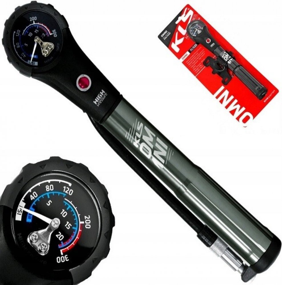 Minipumpa Kellys Omni v sobě kombinuje možnosti foukání jak duší pneumatik, tak vzduchových tlumičů na vidlicích. Je vhodná na všechny typy ventilků a díky otočné hadičce není problém s manipulací při nafukování. Potěší i přehledný manometr a dvojstupňový mechanismus, u kterého lze přepínat mezi foukáním na vysoký tlak nebo velký objem.