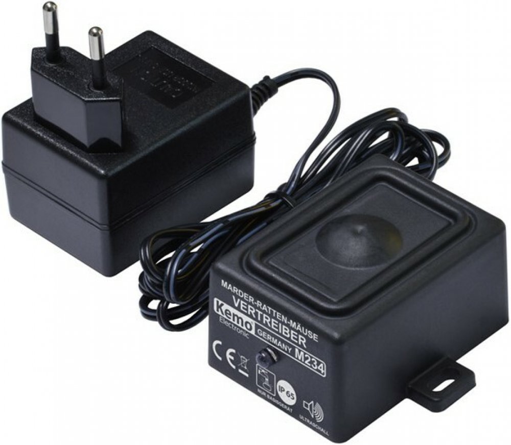 Ultrazvukový odpuzovač M234 vytváří ultrazvukové signály, které jsou velmi nepříjemné pro drobné automobilové škůdce. Odpuzovač M234 působí především na kuny, lasičky a drobné hlodavce. Chrání tak kabely, a zejména izolační materiály umístěné v motorovém prostoru automobilu před zničením. Přístroj M234 je určen pro napájení ze zásuvky. To umožňuje všestranné využití například na zahradě, v garáži či na půdě. Uvnitř je vybavený ultrazvukovou hlavičkou polosférického tvaru, která vysílá nepravidelný ultrazvukový signál v rozsahu 22,5 - 28 kHz v neuvěřitelném širokém úhlu 160°. Díky měnícím se signálům se již nestane, že si na signál hlodavec či kuna zvykne.