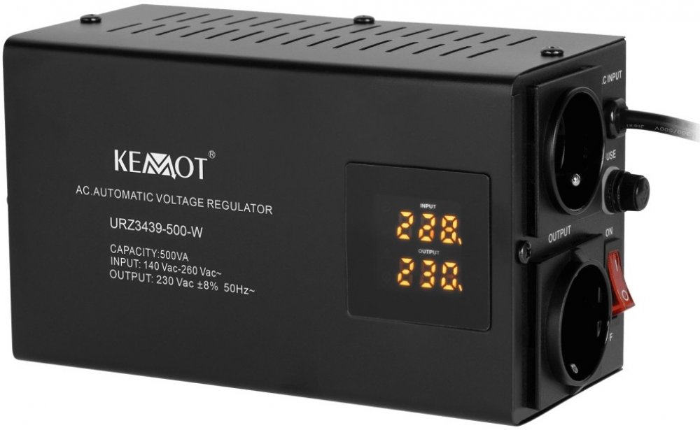 Vstup: Rozsah napětí 150 - 270 V AC Vstup: Frekvence 50/60 Hz Výstup: Napětí 230 V Výstup: Frekvence 50/60 Hz Výstup: Přesnost ±8% Výstupní napětí: Jedna fáze Transformátor EI Účinnost: 98% Ochrany: proti příliš vysokému a nízkému napětí, přetížení, přehřátí, zkratu Zpoždění: Žádné zpoždění / zpoždění (180/6 sekund) Provozní teplota: 0~40°C Relativní vlhkost: 10%~90% Skladovací teplota: -15~45°C -...