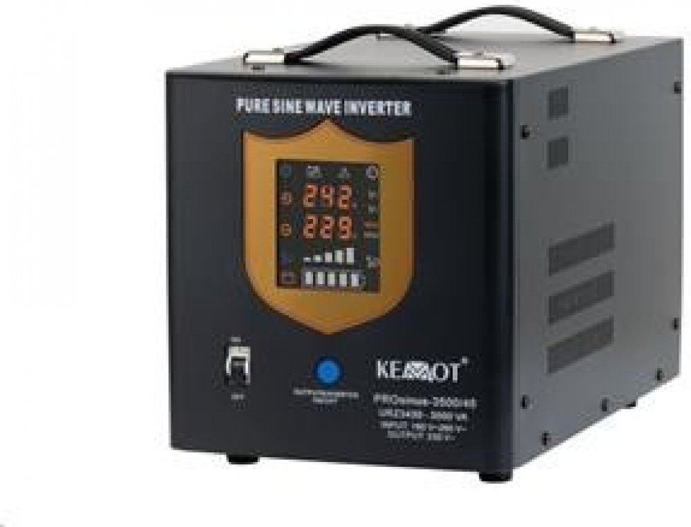 Nouzový napájecí invertor s čistou sinusovkou a funkcí nabíjení KEMOT PROsinus-3500/48 Technické parametry:- Jmenovitý výkon: 2400 W- Typ baterie: 48 V DC- Maximální napětí baterie: 60 V DC- Rozsah vstupního napětí: 190 - 260 V AC- Vstupní frekvence: 45 - 60 Hz- Rozsah výstupního napětí: 230 V AC +/- 5 % / Měnič: 230 VAC +/- 3 %- Výstupní frekvence: 50/60 Hz +/- 0,5 Hz- Tvar výstupního napětí: Čis...