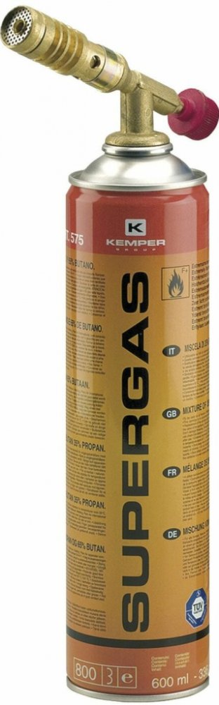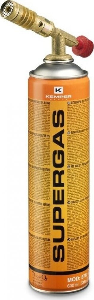 Jednoduchý mosazný pájecí hořák s plynulou regulací výkonu. Hořák SuperGas 575 je možné využít na pájení, nahřívání, podpalování krbu, kotle, ohniště, grilu, rozmrazování, opalování, lze využít pro cukrářské účely a laboratorní práce. Hořák lze použít se všemi kartušemi plynu se závitem 7/16. Klíčové vlastnosti pájecího hořáku GYS, Kemper SuperGas 575Kompatibilní se všemi kartušemi plynu se závitem 7/16Vyrobeno z mosaziPlynulá regulace výkonuVhodné zejména pro připojení k hořákůmTeplota plamenu v kombinaci s kyslíkem SUPERGAS 2850 °CTeplota plamenu v kombinaci se vzduchem SUPERGAS 1900 °C Obsah balení:1× hořák 1047 SC, 1× plynová kartuše plynu Supergas 575 (600 ml)Maximální teplota:1850 °C s plynem SUPERGASVýkon:1750 WObsah:600 mlHmotnost bez kartuše / s kartuší:182 g / 330 g