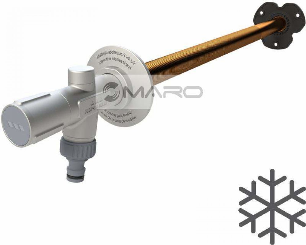 Nezámrzná venkovní armatura Kemper FROSTI s rukojetí XL vhodná pro instalaci do hrubých staveb a pro dodatečnou montáž na již dokončenou obvodovou stěnu. Armaturu je možné upravit na přesnou délku dle požadované stavební hloubky. • minimální stavební hloubka: 150 mm • maximální stavební hloubka: 530 mm • maximální provozní teplota: 65°C • hladina tlaku PN 16 • průtok až 45 l/min (při 1 bar) • v uzavřeném stavu jsou všechny kovové části z Bronzu, odolné vůči agresivním kapalinám • vnitřní horní díl pro rychlé a pohodlné otevření jen se dvěma otočeními • kuželka s vnitřní zpětnou klapkou • EPDM-sedlové těsnění • lze prodloužit prodlužovací sadou volitelně dostupnou • integrovaná zpětná klapka a přivzdušňování jako kombinovaná ochrana HD • vstupní závit je venkovní • bez mrtvého bodu • včetně rychlo spojky pro běžné systémy • funkční větrací ventil k automatickému vyprázdnění s ochranou proti krádeži • matně chromovaný ovládací úchyt s ochranou proti překroucení • obsahující dvojdílnou nástěnnou desku pro dokončení montáže na stěnu • výtokové těleso s montážními plochami • DVGW-povolení dle DIN EN 17821 • registrace ÖVGW a VA • plastové díly s certifikací KTW a W 270 • podle oceňovacího základu UBA • povolení zvukové izolace podle DIN EN ISO 3822 třída 1 • DIN EN 1717