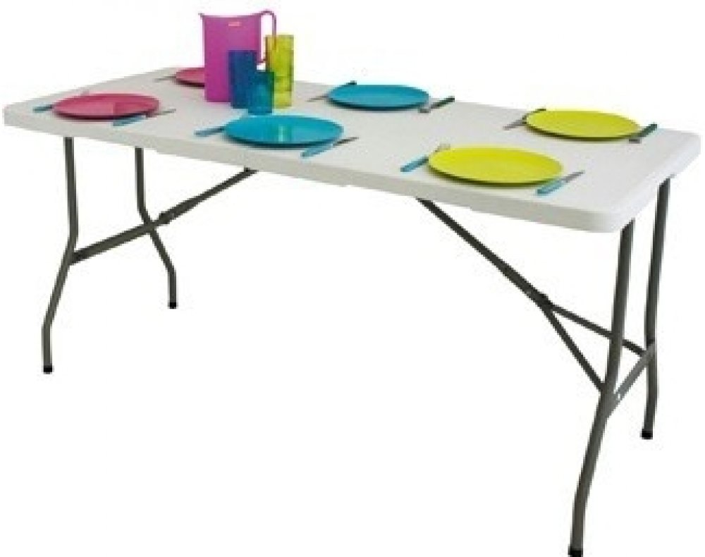 Zahradní a kempingový stůl M – tento stůl je opravdu stabilní kus nábytku. Tuto užitečnou vlastnost zajišťuje pevná ocelová konstrukce a jednolitá plastová deska stolu. Konstrukce je navíc zpevněna pomocí ramen vedoucích ke středu stolu (pod deskou). Deska se skládá napůl – celý stůl se pak složí jako kufr. Praktické uchycení pro snadné přenášení. 100% voděodolný a UV stabilní. Ocelová konstrukce o průměru 28mm. Barva: šedá konstrukce a bílá svrchní deska. Rozměry: 180 × 75 × 75cm, po složení: 92 × 75 × 10cm. Hmotnost: 14,8 kg