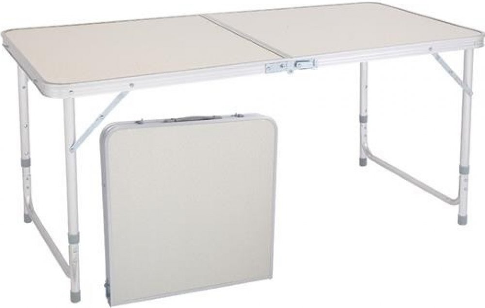 Klasický skládací turistický a kempový stůl můžete umístit na zahradu nebo s sebou vzít na dovolenou do kempu. Vyroben z vysoce kvalitních materiálů. Stůl se skládá z ocelové a hliníkové konstrukce a desky stolu MDF.