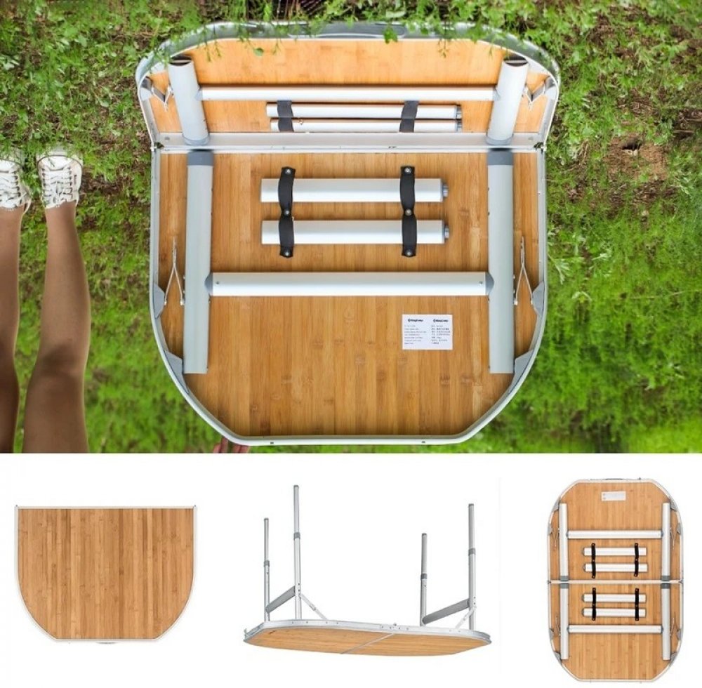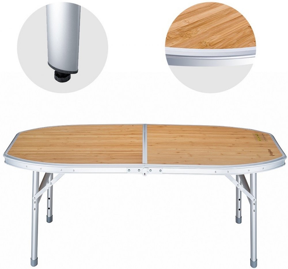 Skládací kempingový stůl KING CAMP s bambusovou vrchní deskou o rozměrech 120 x 80 cm skládací kempingový stůl hliníkový rozměry stolu 120 x 80 cm nastavitelná výška stolu nad zemí 68 a 46 cm materiál konstrukce hliník hmotnost 9,2 kg nosnost 80 kg rozměry pro uskladnění: 81 x 64 x 9 cm ochranný obal součástí balení