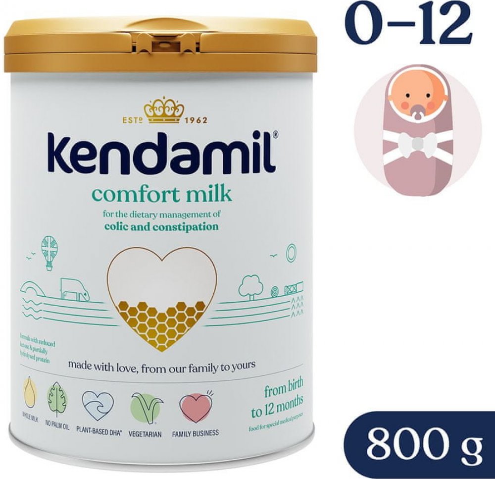 Kendamil Comfort je potravina pro řízenou dietní výživu při kolice a zácpě s částečně hydrolyzovanou bílkovinou a v porovnání se standardní kojeneckou výživou také se sníženým obsahem laktózy. Potravina musí být podávána pouze na doporučení lékaře a pod jeho dohledem.