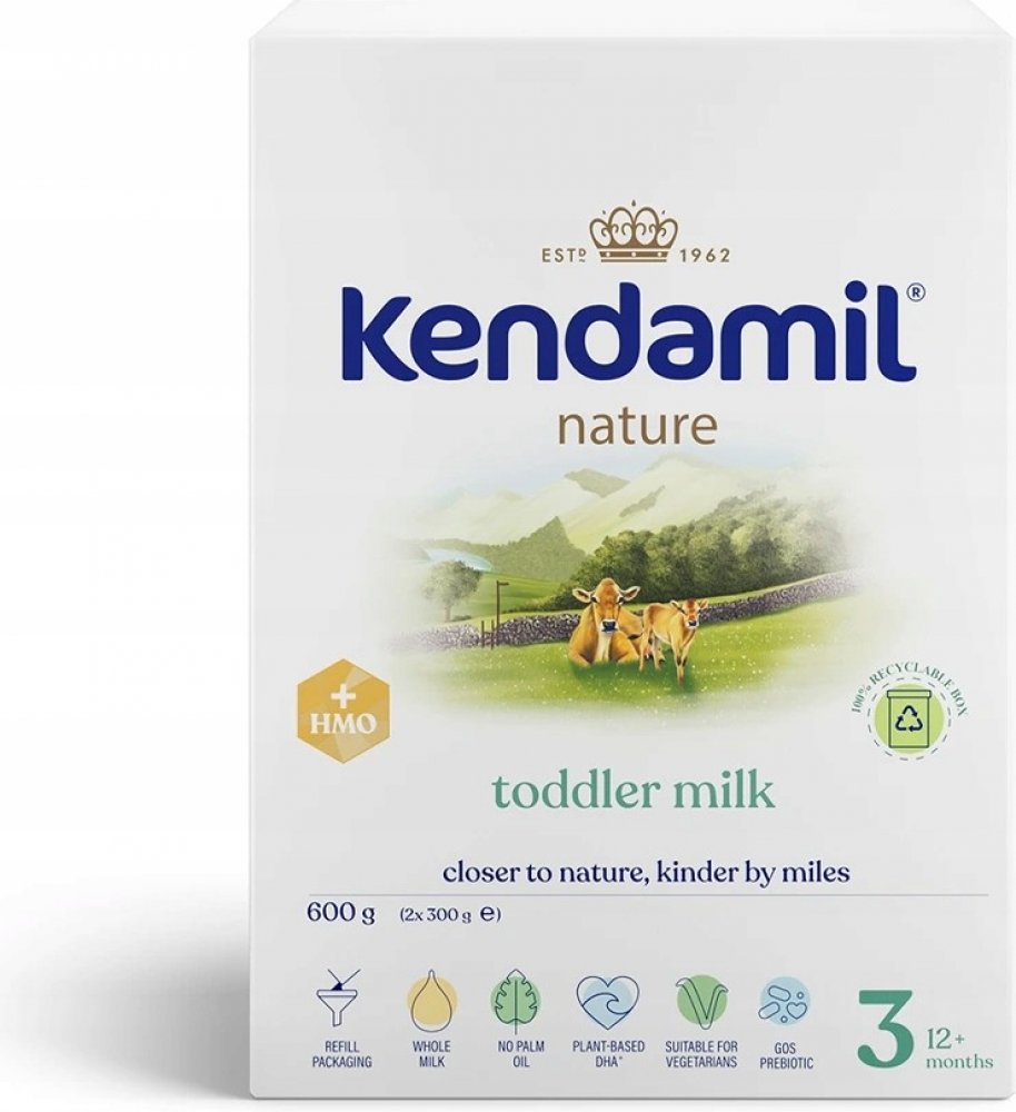 Nová vylepšená receptura s oligosacharidem mateřského mléka HMO (3´GL) a prebiotiky GOS vznikla na základě 60letého výzkumu a vývoje. Kojenecké mléko Kendamil BIO Nature je inspirováno tím nejlepším z čisté přírody. Jeho základ tvoří především plnotučné kravské mléko v BIO kvalitě s přirozeným obsahem mléčného tuku po vzoru mateřského mléka. Určeno pro děti od jednoho roku. Obal je plně recyklovatelný.