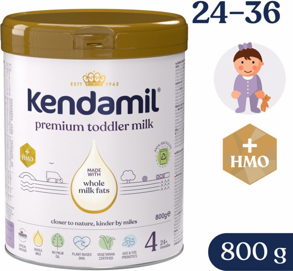 Důležité upozornění: Kojení je nejlepší způsob výživy Vašeho dítěte. KENDAMIL PREMIUM 4 HMO+ je určen pro výživu malých dětí od ukončeného 24. měsíce a měl by tvořit pouze součást smíšené a vyvážené stravy malého dítěte. Při krmení z lahvičky, zamezte nepotřebnému prodlužování kontaktu savičky se zoubky, zvyšujete tím riziko zubního kazu. Pečujte o hygienu ústní dutiny dítěte, především před spaním. Dodržujte pokyny pro přípravu, krmení a skladování, jinak ohrozíte zdraví dítěte. Není určeno pro děti do 12 měsíců.