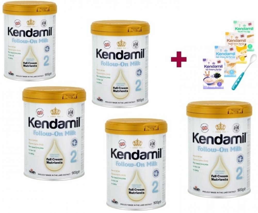 Poznávací kaše Kendamil ve čtyřech variantách pro děti od 4 měsíců se lžičkou ZDARMA. Počáteční kojenecká výživa.