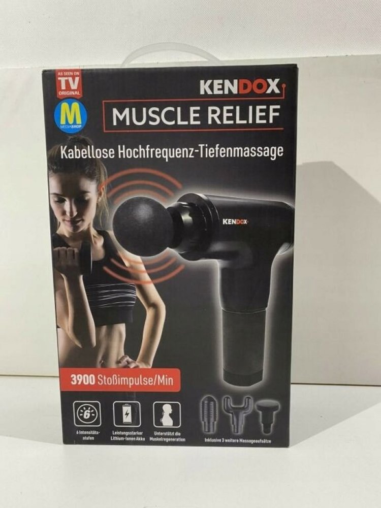 Kendox Muscle Relief má 6 úrovní intenzity a 4 snadno vyměnitelné masážní hlavice. Vidlicovou hlavou masírujte krk, páteř a achilovku. Velké svaly a svalové skupiny s kulovou hlavou. Pomocí bodové hlavy masírujte klouby - a s plochou hlavou všechny ostatní části těla - zejména chodidla.