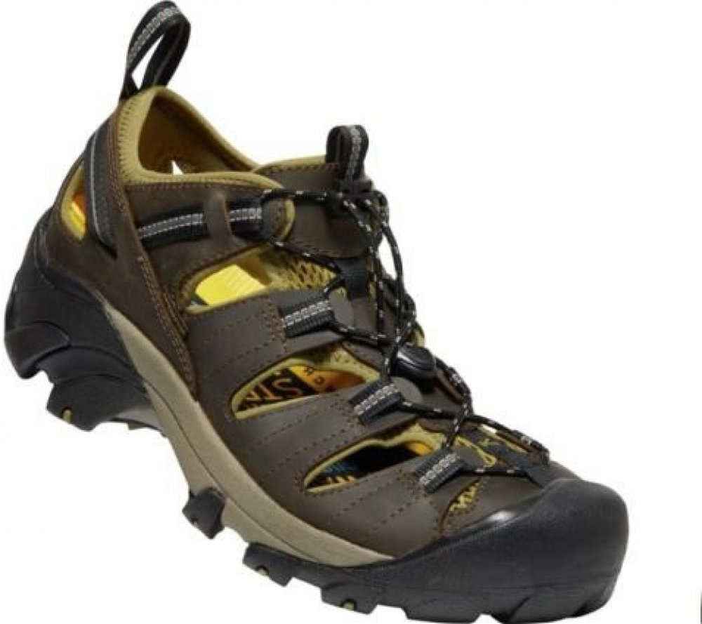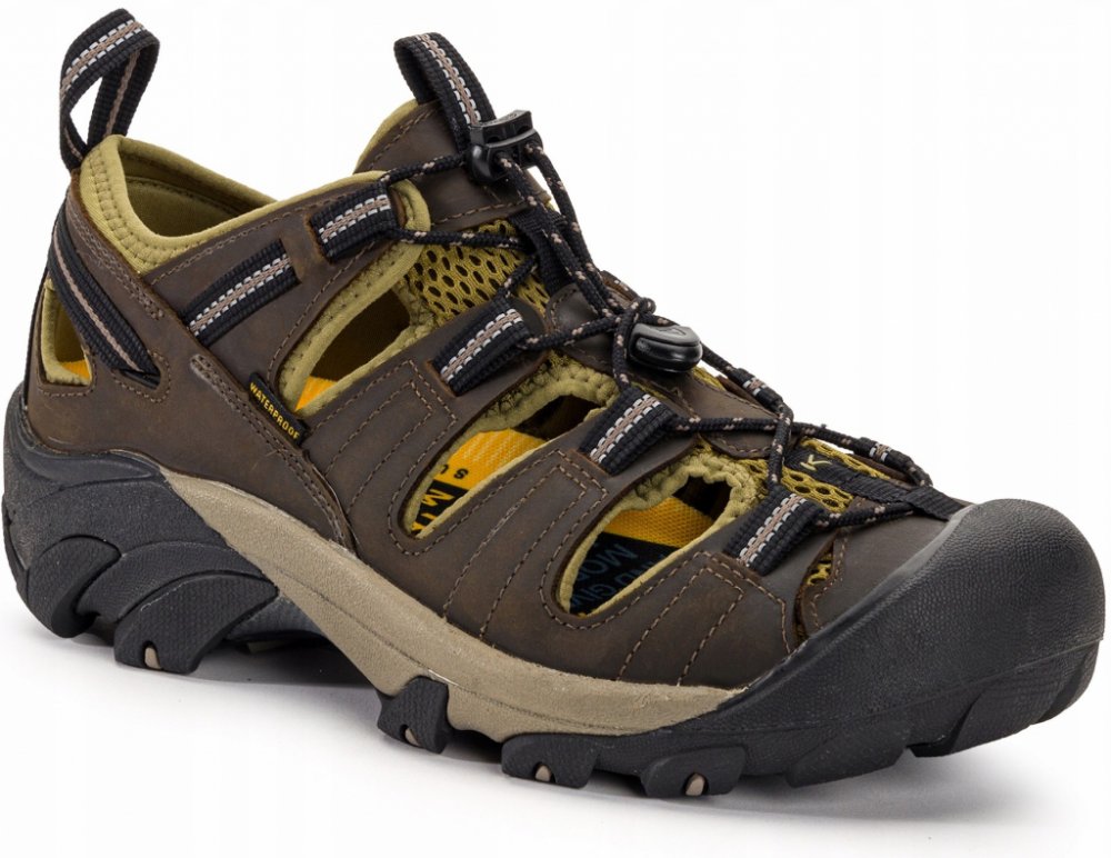 Jeden z nejpopulárnějších modelů letních hybridních bot na trhu Keen Arroyo II v sobě spojuje přednosti vzdušného sandálu a klasické trekovky. Svršek je z kvalitní, ekologicky certifikované kůže, navíc ošetřené PFC-free impregnací. Systém rychlozavazování pružnou tkaničkou a možnost stáhnout botu pevně k patě, společně zajišťují přiléhavé obepnutí nohy. Mezipodešev z materiálu EVA dvojí hustoty dokonale tlumí rázy při došlapu. Pohodlí při celodenním nošení dále zvyšuje vyjímatelná vložka z materiálu EVA dvojí hustoty. Gumová podešev KEEN.ALL-TERRAIN s 5 mm hlubokým vzorkem umožňuje bezpečnou chůzi i v náročnějším terénu, kde oceníte patentovanou ochranu prstů KEEN.PROTECT. Stabilitu došlapu zlepšuje také vstřikovaný klenek z termoplastického polyuretanu (TPU). Bota je ošetřena přírodní antibakteriální technologií ECO ODOR CONTROL, která omezuje zápach v botách.