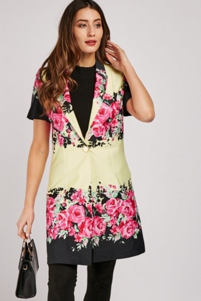 s krátkým rukávem loose fit květované