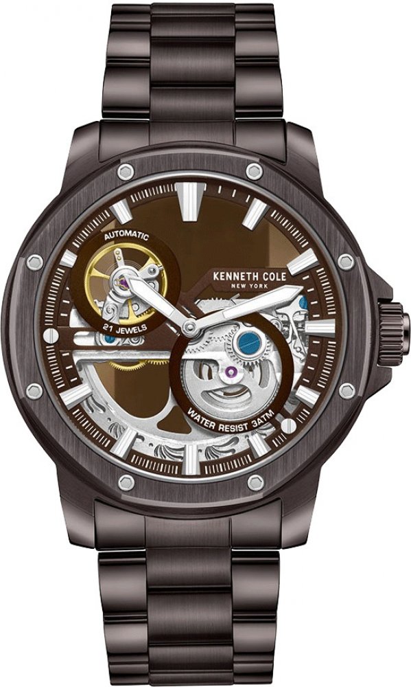 Kenneth Cole analogové ocel elegantní pánské automatické pro běžné použití (30–50 m) 44.0 mm ocel 44 x 44 x 12 mm 30 m automatické minerální kulaté hnědá hnědá překlápěcí spona na ruku bez číslic 4.4 cm střední pevná ocel 12.0 mm 44.0 mm s občasnou údržbou (automatické)