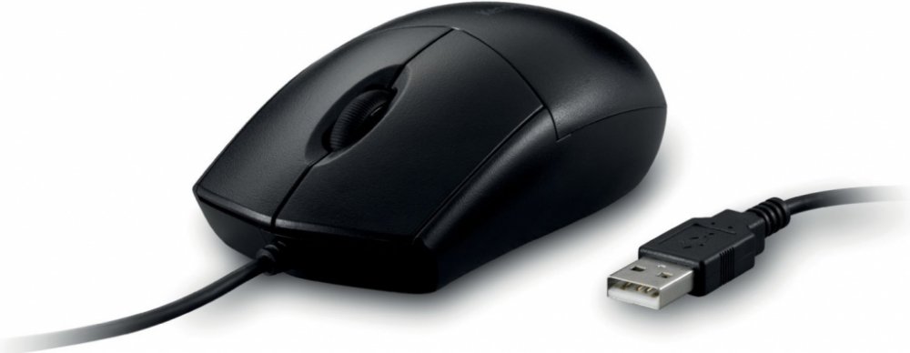 Univerzální tvar konstrukce myši celkem se 3 tlačítky včetně rolovacího kolečka je vhodný jak pro praváky, tak pro leváky.