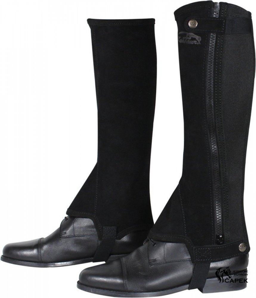 Vysoce odolné minichapsy z velurové kůže od firmy Kentaur. velurová kůže (spodní strana usně - není hladká) boční zip gumová vsadka podél zipu pro dokonalé obepnutí holeně široká kombinace velikostí velmi odolné téměř bezúdržbové silné zipy vhodné na každodenní ježdění Zákazníci hledají také: minichaps, chapsy, ochrana na lýtka, jezdecké návleky