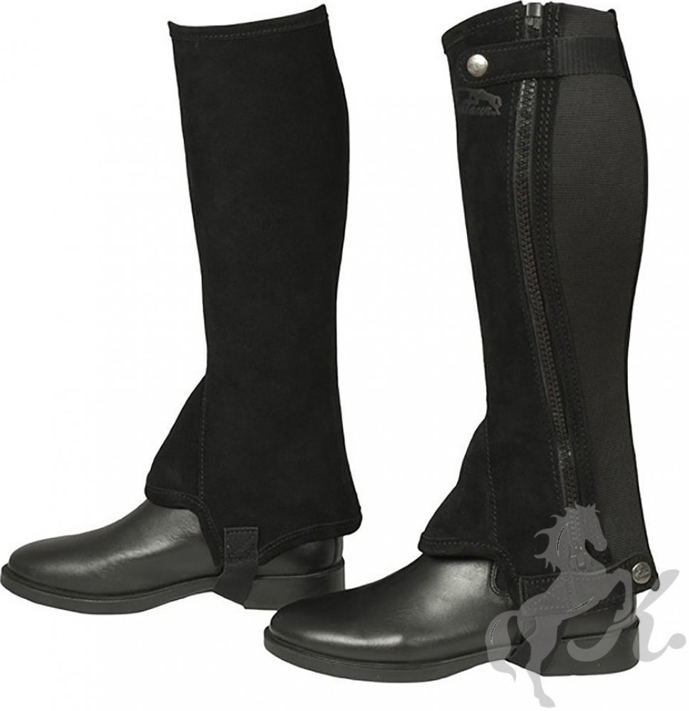 Nejprodávanější chapsy z pravé semišové kůže se zapínáním na zip a druky. Chapsy jsou vhodné pro každodenní ježdění, nejsou povoleny na skokových závodech! Mají velice dobrý střih a díky všité gumě podél zipu perfektně padnou. • nejprodávanější chapsy • pravá semišová kůže • zapínání na zip • elastická guma po celé délce • nejsou povoleny na závody! Barva: černá Materiál: semišová kůže