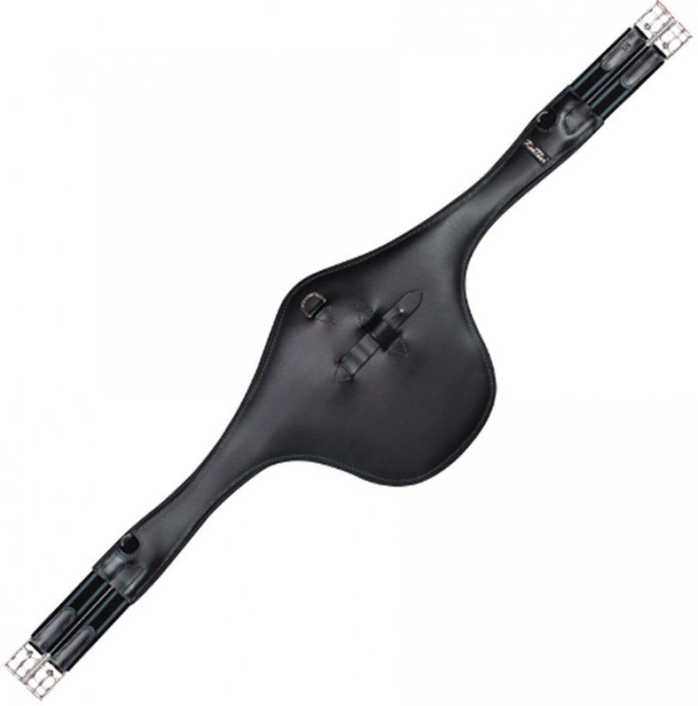 Klasický skokový kožený podbřišník s krytem hrudníku jako pevnou součástí. Velmi dobrá pomůcka pro ochranu koně před zraněním vlastními podkovami při skokové práci. Podbřišník je v oblasti okopávání extra vypolstrován měkkou pěnovou vložkou. Na spodní části je očko na pomocné otěže a na obou stranách jsou dotahovací gumy s ideální tuhostí. Očka na upnutí poprsníku po stranách. Kvalitní nerezové ko...