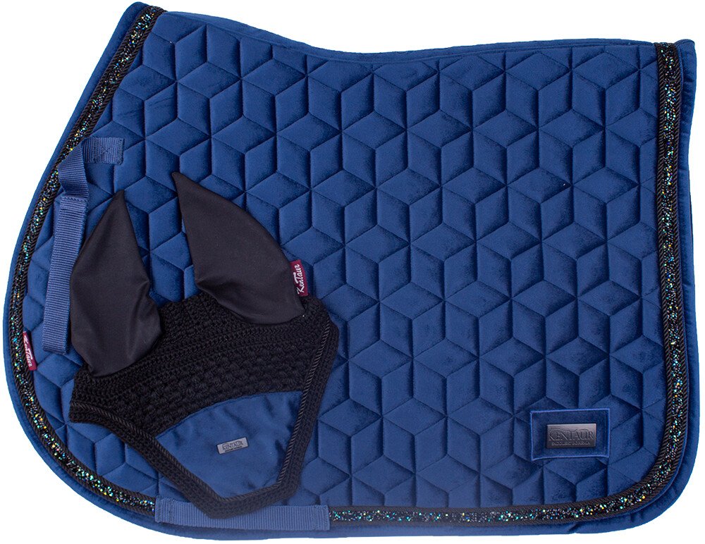 Luxusní sametová podsedlová dečka s čabrakou KENTAUR 40597 nabízí nejen atraktivní vzhled, ale i funkčnost. Dečka je prošívaná novým geometrickým vzorem, který vyniká v kombinaci s čabrakou s náušníky. Ozdobný lem je doplněn kamínky a černým plíškem s logem značky. Spodní strana je vyrobena z HI-TECH síťoviny, která zajišťuje rychlé schnutí a pohodlí pro koně i při náročném tréninku. Vhodné pro ka...