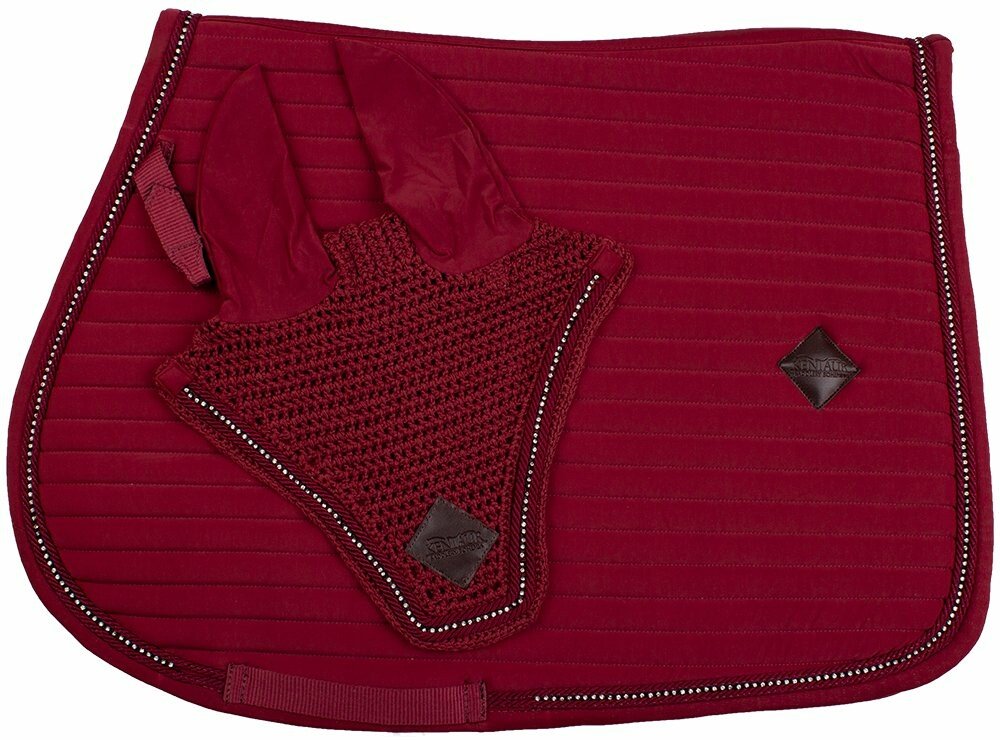 Tento designový set od značky Kentaur zahrnuje podsedlovou dečku a náušníky v jednotném stylu. Dečka vyniká vodorovným prošíváním a je vyrobena z prodyšného softshellového materiálu, který zajišťuje komfort při jízdě. Luxusní vzhled dotváří jemné perličkové lemování a decentní kožené logo Kentaur. Praktický nylonový pásek umožňuje snadné a pevné protažení podbřišníku. Náušníky jsou sladěné s dečko...