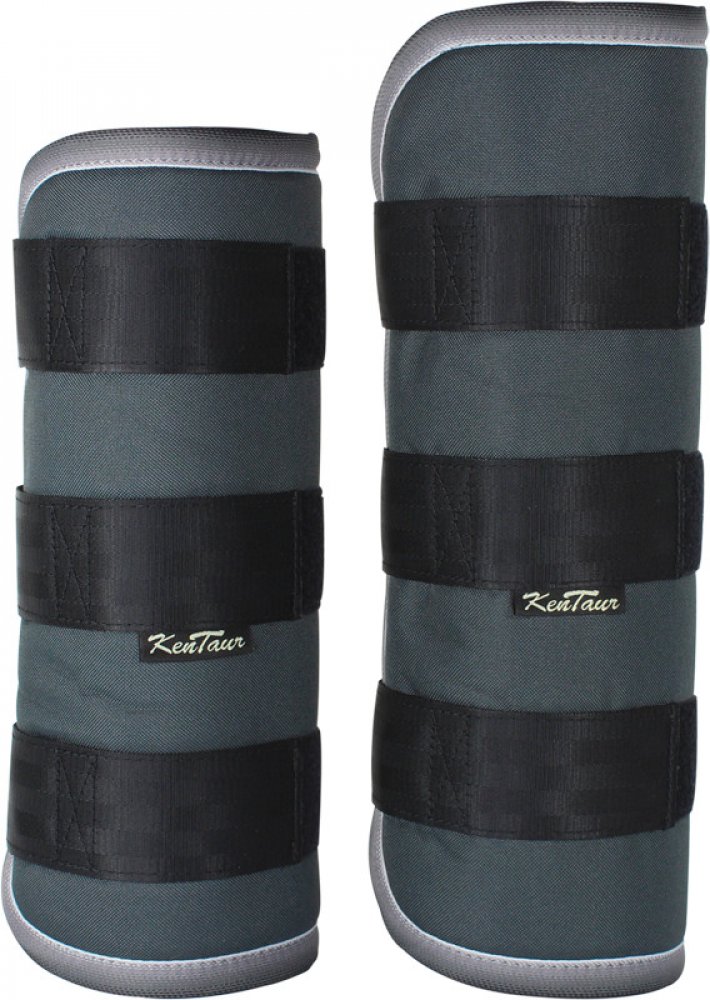 Jednoduché stájové chrániče nohou/zateplovací bandáže. Horní materiál je velmi pevný ripstop, podšívka je fleece, výztuha 3 cm PP pěna. Tyto chrániče neroztrhá žádný kůň. Zapínání na suchý zip. Dodává se jako sada. 35x39 cm + 40x39 cm
