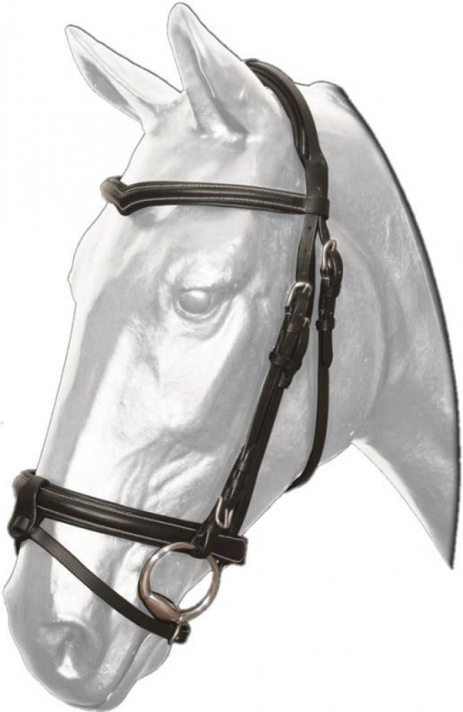 Velmi kvalitně provedená uzdečka s anglickým kombinovaným nánosníkem a čelenkou tvarovanou do písmene "V"- kontrastní prošití čelenky, nánosníku a nátylníku- polstrovaný nánosník, čelenka a nátylník- nánosník vedený na nátylníku horem- odnímatelné očko nánosníku- dodáváno včetně plátěných otěží se zarážkami- kvalitní kůže