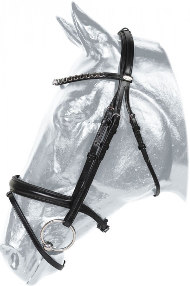 Uzdečka s anglickým nánosníkem vyrobena z kvalitní italské kůže. Podložený nátylník. Otěže s háčky. Uzdečka patří k základní výbavě každého koně. Dle preferencí lze volit mezi klasickou uzdečkou nebo uzdečkou bezudidlovou či uzdou pro drezurní ježdění. Uzdečku lze u citlivého koně doplnit návlekem na lícnice, nánosník nebo nátylník z umělého beránku.