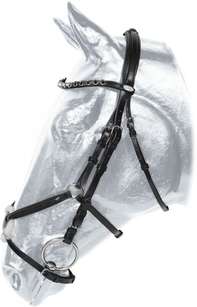 Uzdečka pro koně s mexickým nánosníkem vyrobena z kvalitní italské kůže. Podložený nátylník. Otěže zakončené přezkou. Uzdečka patří k základní výbavě každého koně. Dle preferencí lze volit mezi klasickou uzdečkou nebo uzdečkou bezudidlovou či uzdou pro drezurní ježdění. Uzdečku lze u citlivého koně doplnit návlekem na lícnice, nánosník nebo nátylník z umělého beránku.