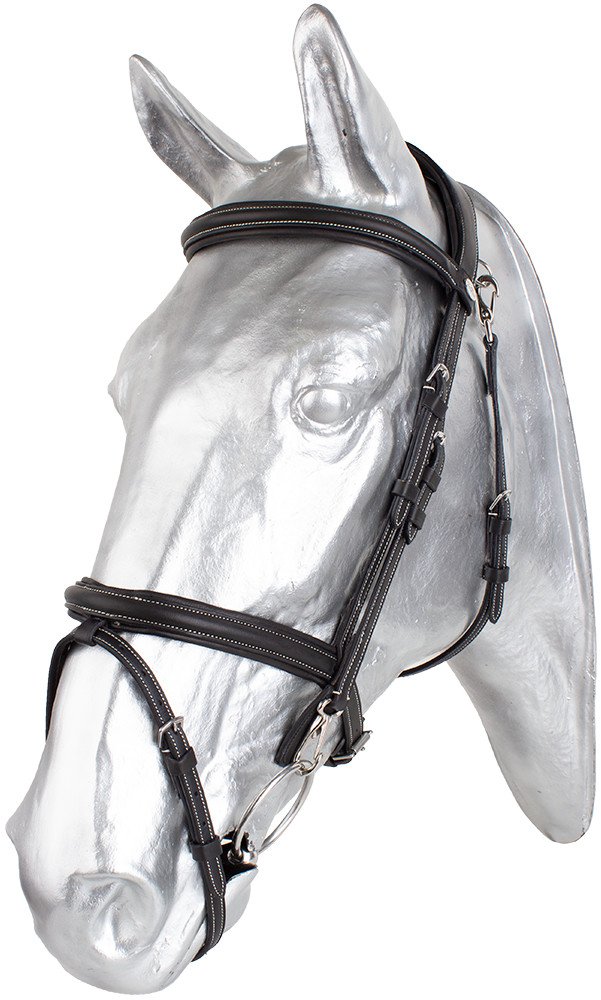 Exkluzivní uzdečka z prvotřídní olejované kůže. Díky napuštěnému oleji je uzdečka velmi měkká. Novinkou u uzdečky je zapínání podhrdelníku, který se zapíná pomocí karabin z obou stran. Také lícnice jsou zakončeny karabinou pro snadnou výměnu udidla. Uzdečka má anglický kombinovaný nánosník s vyndávacím tzv. T kusem ( očko pro uchycení podepínacího řemínku ) Pohodlí zajistí anatomicky tvarovaný ( rozšířený ) nátylník za ušima, který lépe rozkládá tlak. Vše je měkce podloženo pro maximální pohodlí koně. Uzdečka se dodává včetně plátěných otěží se zarážkami.