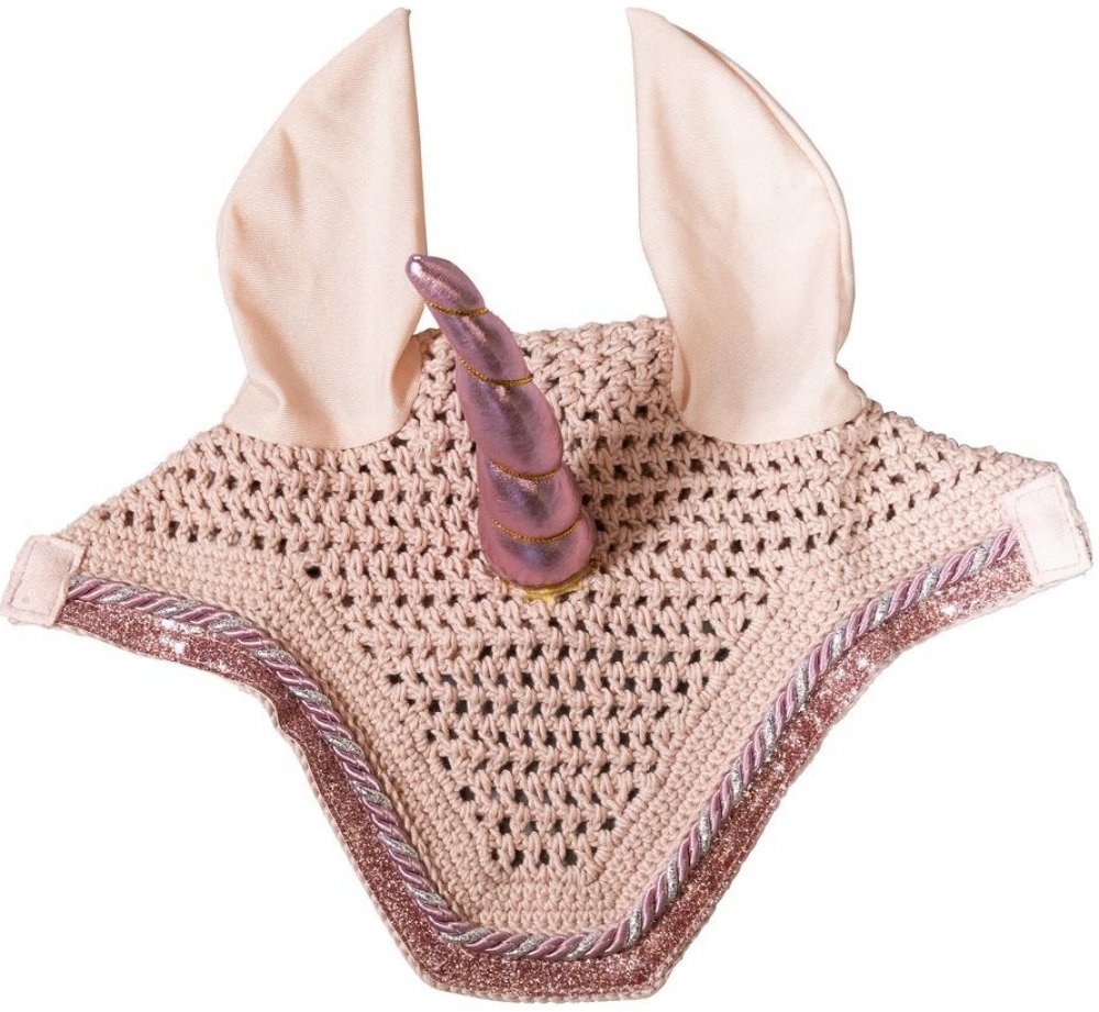 Je ručně vyrobena z velmi měkké, příjemné a prodyšné tkaniny, která zaručuje maximální komfort. Materiál uší je strečový a přiléhavý. Pletená část je vzadu delší, aby se zabránilo sklouznutí, či pohybu během jízdy. Ochrání vašeho koně před otravným hmyzem, rušivými vlivy a zároveň mu dodá kouzelný vzhled díky ohromujícímu růžovému rohu s třpytivými detaily. Jemný růžový odstín se perfektně hodí k jakékoliv barvě srsti. Celkový design…