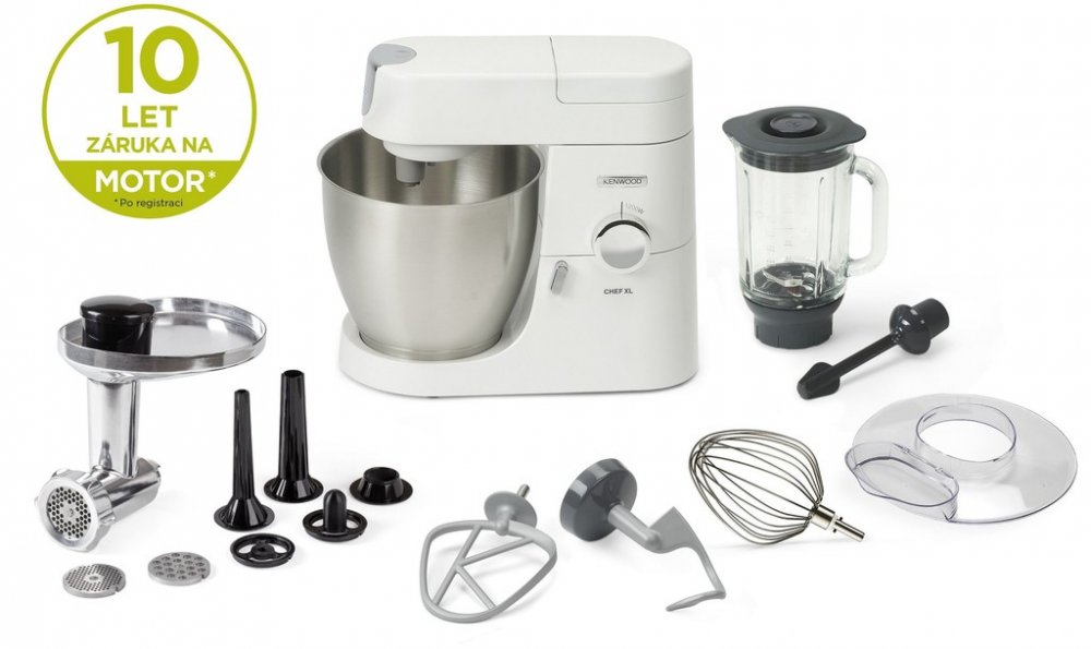 Kenwood Chef KVL4170W doplňuje kovový mlýnek na maso a termo-odolný skleněný mixér. Mlýnek umožňuje rychle umlít či nasekat maso, ryby, zeleninu, ovoce i tvrdé sýry. Obsahuje 3 nerezové kotouče a nástavce na výrobu klobás a kebbe. Mixér z borosilikátového skla o objemu 1,6 l odolá teplotním šokům. Výkonné ostří z nerezové oceli umixuje polévky, koktejly, smoothie i drcený led.