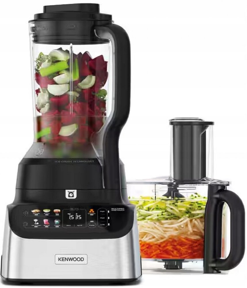 2 v 1: kuchyňský robot a mixér. S automatickými předvolbami pro přípravu surovin jedním dotykem a výkonným motorem o výkonu 1000 W. Všestranné řešení Kenwood pro vážení, mixování, hnětení, přípravu purée, sekání, strouhání, krájení, mixování a dokonce i drcení ledu.