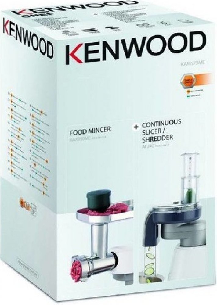 Kenwood KAM573ME – balení příslušenství pro domácí vaření Kenwood KAM573ME je výhodný set dvou osvědčených nástavců: mlýnek na maso KAX950ME a kráječ/strouhač AT340. Oba nástavce jsou určené pro kuchyňské roboty Kenwood s vysokorychlostním i nízkorychlostním výstupem – včetně řad Sense, Chef a kMix. Balení tak rozšiřuje možnosti vašeho robota o mletí masa, výrobu sekaných směsí a strouhání zelenin...