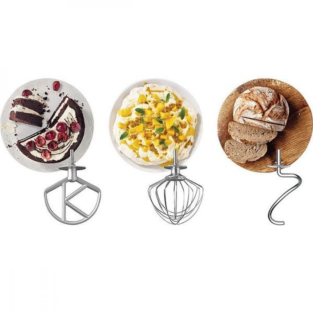 - Bohaté příslušenství – hnětací hák, K-metla, šlehací metla
