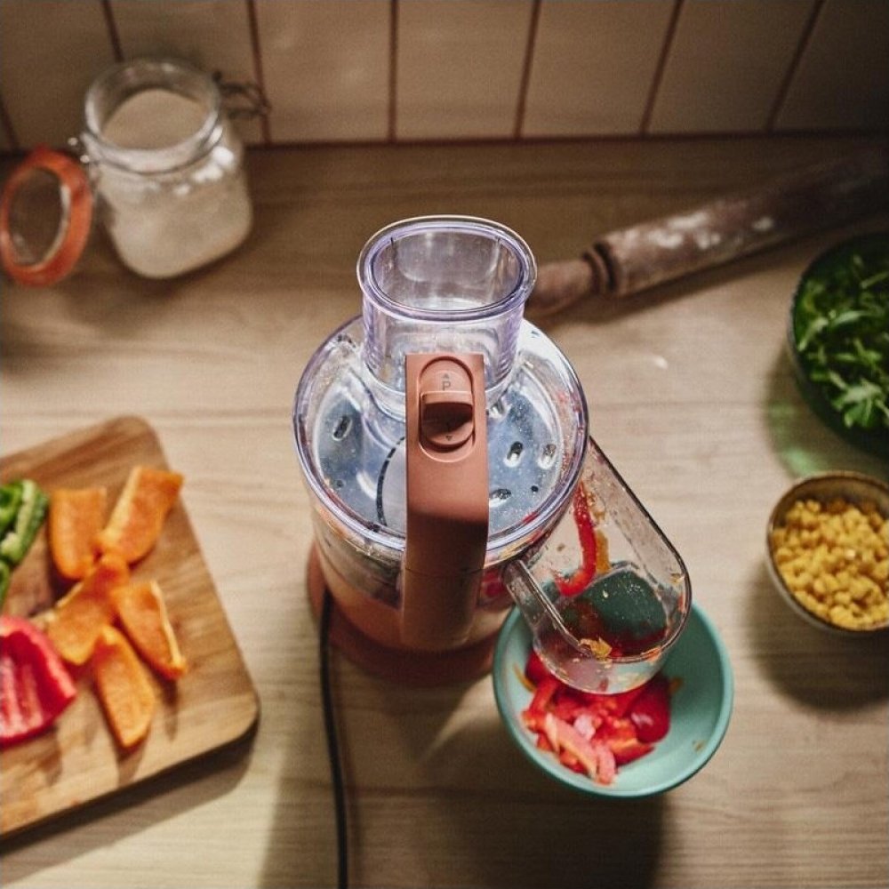 Celá příprava jídla na jednom místě. Žádné složité skládání, žádný nepořádek. Snadno vyměnitelné nástavce promění kuchyňský robot v mlýnek, mixér nebo jakékoliv struhadlo. Malé, ale chytře navržené nástavce do sebe zapadají, což šetří čas při skladování, ale stále umožňují plně využít jejich potenciál. Krájení, sekání nebo hnětení těsta během několika sekund.