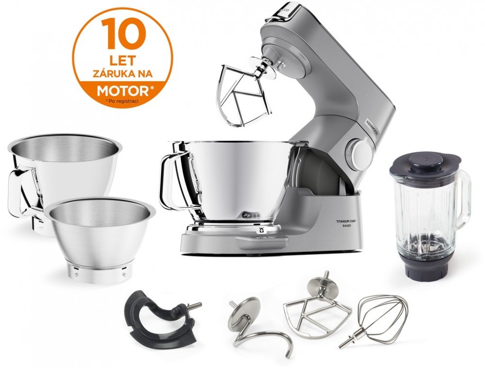 Kuchyňský robot Titanium Chef Baker XL EasyWeigh váha Vážení přímo v míse, nebo mimo-S hmotností od minimálně 1 g do maximálně 6 kg Displej disponuje také funkcí časování. 1200W výkonný ChefMotor Digitálně řízený ChefMotor s funkcí postupného míchání/digitální Chef motor je řízen automaticky s variabilním ovládáním rychlosti. Vynikající výsledky pro delikátní promíchávání a šlehání Nová Kenwood World App Každodenní inspiraci naleznete díky receptům v aplikaci, které vás provedou pečením krok za krokem LightLift Head Usnadňuje manipulaci při přidáváním surovin do mísy Do sebe zapadající 2 mísy DuoBowl Pro pohodlné manipulaci Neomezená kreativita s 7l + 5l nerezovou mísou s držadlem Míchací nástavce EasyClean - 4 míchací metly s doživotní zárukou - hnětací hák - K-metla - šlehací metla - flexi metla Skleněný ThermoResist mixér o objemu 1,6 l Barva silver Kompatibilita s více než 25 volitelných nástavců, od krájení a drcení až po pomalé odšťavňování lisu