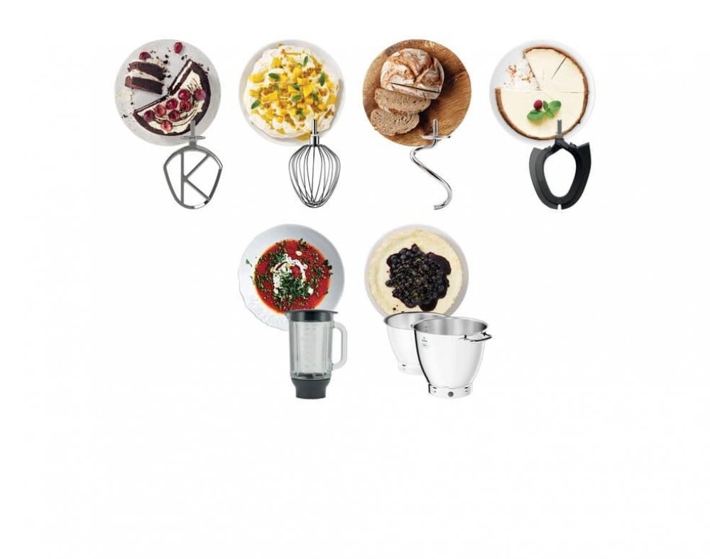 Ke kuchyňskému robotu Kenwood KWL90.124SI obdržíte rovnou 4 míchací nástavce — spirálový hnětací hák, flexi metlu, šlehací metlu a K-metlu. Všechny tyto nástavce můžete bez obav mýt v myčce. Na nerezové metly SystemPRO se navíc vztahuje doživotní záruka. K-metla slouží k přípravě piškotového těsta, bublaniny nebo těst na sušenky, těstoviny, cukrovinky, různých náplní a nádivek. Šlehací metlu využijete pro šlehání smetany i přípravu sněhových pusinek, lehkých těst, suflé, omáček i majonézy. Svým provedením provzdušňuje hmotu a dodává jí nadýchanou konzistenci. Hnětacím hákem rychle a účinně robot uhněte těsto na domácí pečivo, pizzu nebo koblihy. Flexi metla důkladně setře veškeré ingredience ze stěn mísy. Ty potom jemně tře a mění je na hladké krémy nebo třená těsta.