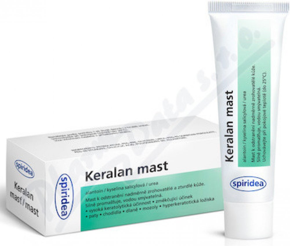 Keralan mast je určená k odstranění a změkčení nadměrně zrohovatělé, ztvrdlé kůže. Vhodná je pro použití na paty, chodila, dlaně, mozoly a jiná hyperkeratotická ložiška. Je vhodná na psoriatickou, ichtyotickou, seboroickou, atopickou a ekzematickou kůži. Kůže zůstane po použití zjemněná a do hloubky hydratovaná. Obsahuje tři aktivní látky - alantoin, kyselinu salicylovou a ureu, které mají keratol...