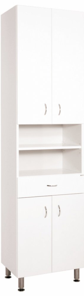 Praktická doplňková vysoká skříňka do koupelny s dostatkem úložného prostoru. Bílé lakované boky i čela, lesk. Součástí dodávky jsou úchytky a nerezové nožičky 10 cm, výškově stavitelné. V nabídce je i rozměrově stejná skříňka s vyjímatelným košem na prádlo (označení PROV50K) ve spodní části skříňky. Skříňka je dodávána smontovaná, ryc...