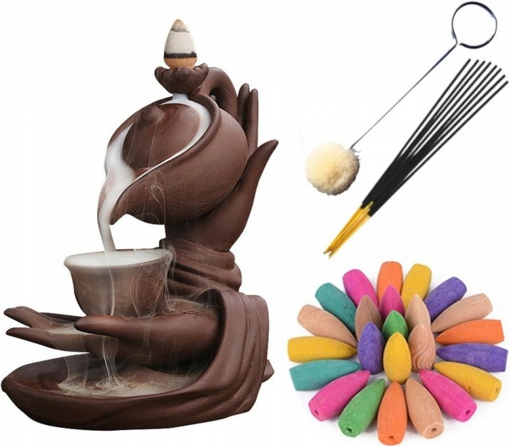 Keramický Aromalampa kadidelnice backflow vodopád RUKA ŠÁLEK