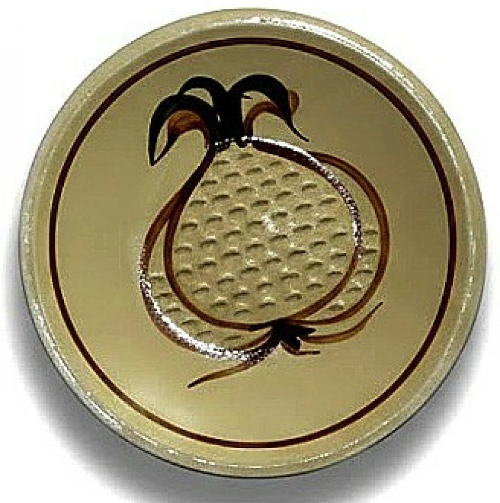 keramikaportal.eu Strouhátko na česnek kulaté,krémové s malovaným motivem česneku.Půměr asi 9cm.