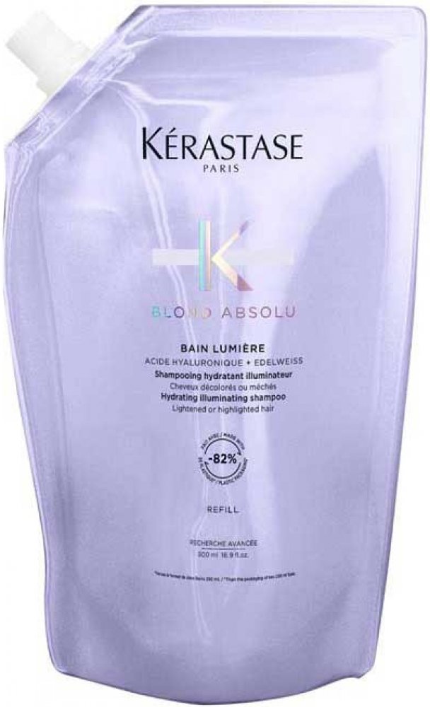 KÉRASTASE Blond Bain Lumière je hydratační a zesvětlující šampon navržený speciálně pro potřeby zesvětlených, odbarvených, šedivých či melírovaných vlasů. Jeho lehká gelová textura jemně čistí vlasové vlákno, odstraňuje nečistoty a zbytky stylingových přípravků, aniž by vlasy zatěžovala. Šampon KÉRASTASE Blond Bain Lumiere díky obsahu kyseliny hyaluronové a extraktu z protěže alpské poskytuje intenzivní hydrataci, posiluje vlasy od kořínků po konečky a zanechává je hebké, lesklé a plné života. Navíc detoxikuje vlasy od znečištění a chrání je před škodlivými vlivy okolního prostředí. Ekologické balení ve formě refill pouchu snižuje spotřebu plastů o 82 % ve srovnání s klasickými lahvemi, což přispívá k ochraně životního prostředí. Klíčové vlastnosti šamponu KÉRASTASE Blond Bain Lumiere Refill Pouch 500 mlIntenzivní hydratace vlasového vláknaŠampon KÉRASTASE Blond Bain Lumiere jemně čistí bez zatížení vlasůOchrana před znečištěním a vnějšími vlivyZvýraznění a rozjasnění blond tónůLehká...