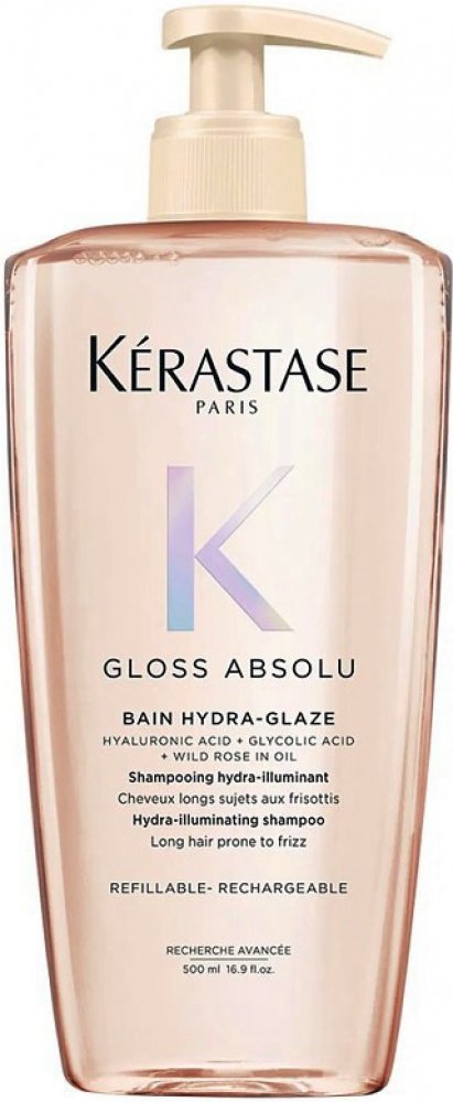 Bain Gloss Absolu Hydra-Glaze je hydratační a rozjasňující šampon pro vlasy se sklonem ke krepatění. Šetrně pomáhá pročišťovat póry vlasové pokožky od odolného kožního mazu a vlasová pokožka může volně dýchat. Prodlužuje dobu mezi mytím vlasů. Čistí povrch vlasových vláken pro maximálně svěží lesk. Zpevňuje a zvlhčuje vlasové kutikuly a dodává vlasovým vláknům jemný a rovnoměrný povrch, díky nemuž mohou odrážet světlo. Průhledná gelová textura, která vytváří bohatou pěnu. Obsahuje kyselinu hyaluronovou, kyselinu glykolovou a olej z divoké růže, aby poskytoval krásné, pružné a lesklé vlasy.