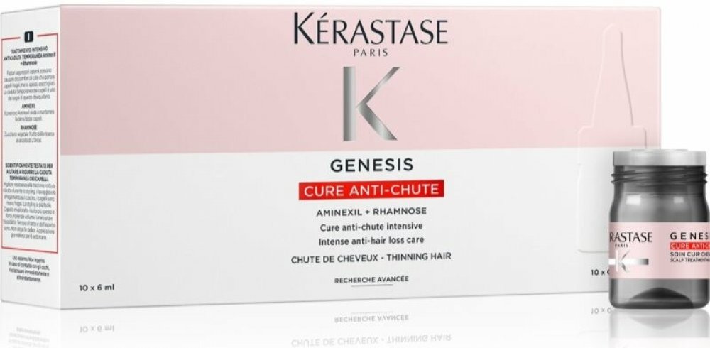 Kérastase Genesis Ampoules Cure Anti-Chute Fortifiantes, 10x6 ml, Vlasová tonika a vody pro ženy, Vlastnosti: čistí pokožku hlavy účinně zbavuje lupů dodává přitažlivý lesk aktivuje činnost vlasových kořínků poskytuje vlasům hydrataci a výživu zajištuje pružnost vlasů