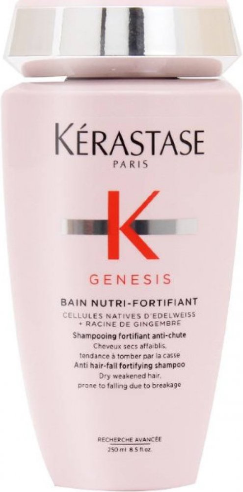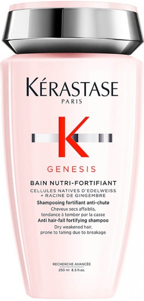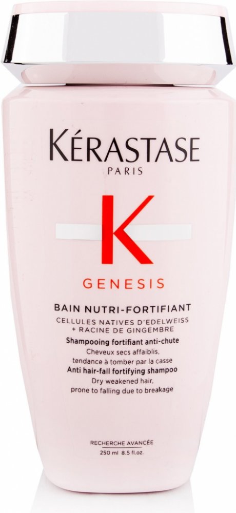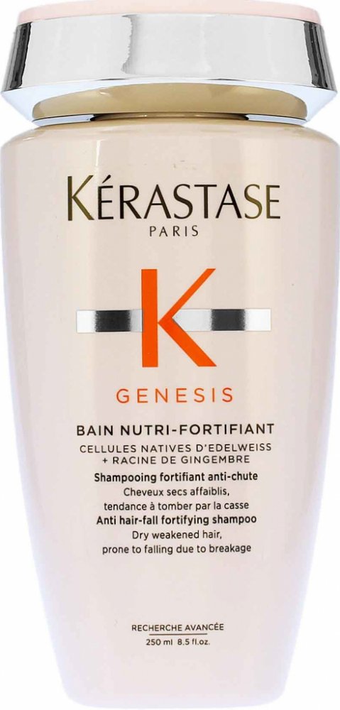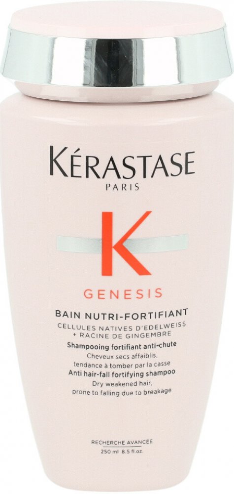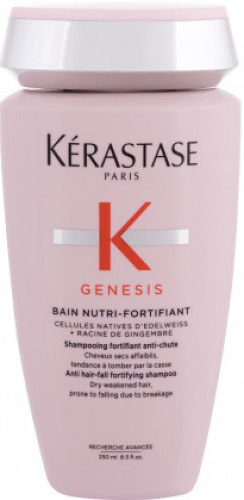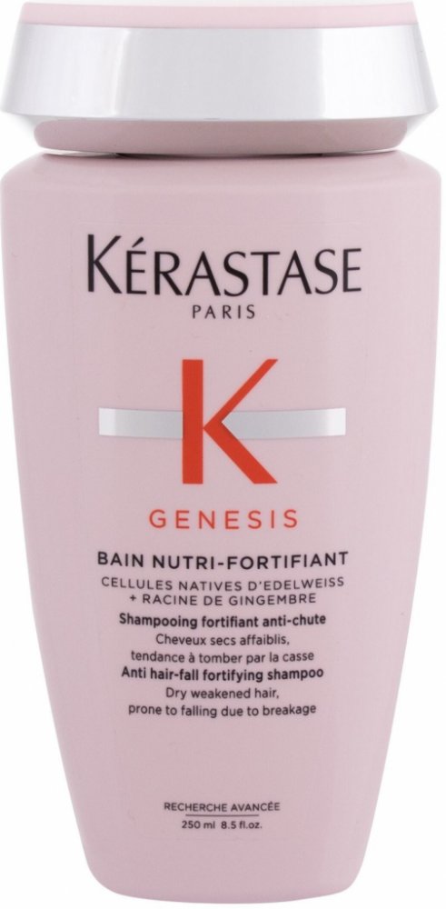 Posilující šampon proti vypadávání vlasů Kérastase Genesis Nutri Anti Hair-Fall Fortifying Shampoo je ideální pro suché a oslabené vlasy náchylné k padání. Jemně čistí pokožku hlavy a posiluje vlasová vlákna a tím předchází ztrátě vlasů.