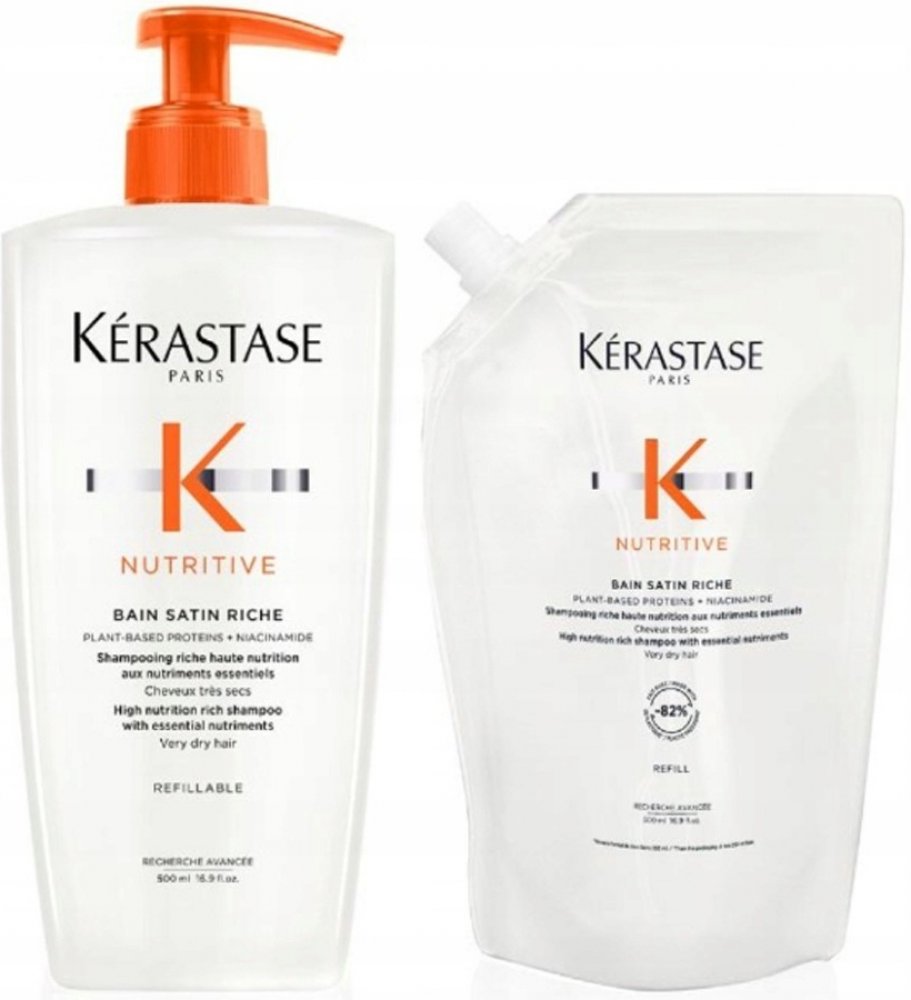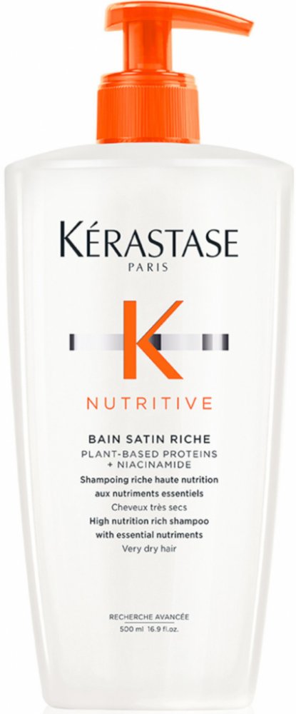 Nutritive Bain Satin Riche od Kérastase je vysoce vyživující šampon pro velmi suché vlasy. Obsahuje polymery bránící vysušování, které vlasům dodávají intenzivní výživu a sílu. Nutritive Bain Satin Riche je proto jedním z nejlepších šamponů pro velmi suché vlasy. Navíc obsahuje nezbytné živiny pro zdraví a sílu suchých vlasů, které zároveň vlasy nezatěžují. Tento šampon s vysoce výživným složením hloubkově čistí a obnovuje suché vlasy, které jsou po použití hydratované a příjemné na dotek. Šampon Bain Satin Riche má bílou krémově-gelovou konzistenci. Pění a zamezuje tření vlasů, a proto je jedním z nejlepších šamponů pro svědivou pokožku hlavy a velmi suché vlasy. Vlastnosti Oživuje velmi suché vlasy a zvyšuje jejich odolnost proti dehydrataci Obnovuje sílu a lesk vlasů Dodává vlasům strukturu a pevnost Okamžitě o 56 % více hydratace a 72hodinová výživa* O 58 % více hebkosti* O 85 % více lesku* Lahvička je z 95 % vyrobená z recyklovaného plastu. *Výsledky instrumentálních testů bezprostředně po použití šamponu Bain Satin Riche Klíčové složky Rostlinné proteiny - proteiny ze zrn pšenice, kukuřice a sóji působí v tomto proteinovém šamponu doslova jako potravinový doplněk. V kombinaci s mastnými kyselinami, omega kyselinami a vitamíny dodávají vlasům základní živiny. Niacinamid - derivát vitaminu B3, který ve vlasech uzavírá výživné látky. Díky tomu dokáže tento šampon posilovat ochrannou bariéru vlasových vláken a udržovat jejich dlouhodobé zdraví. Glicerin - glycerin je látka rostlinného původu zvyšující celkový hydratační účinek přípravku. Použití KROK Naneste na mokré vlasy. KROK Napěňte. KROK Opláchněte a celý postup opakujte. V případě kontaktu s očima ihned důkladně vypláchněte oči vodou. Objeví-li se podráždění, používejte šampon méně často.