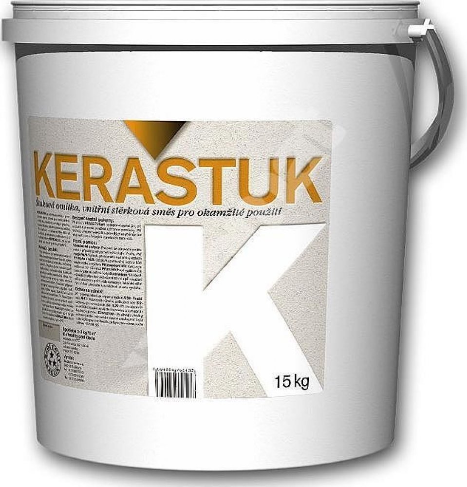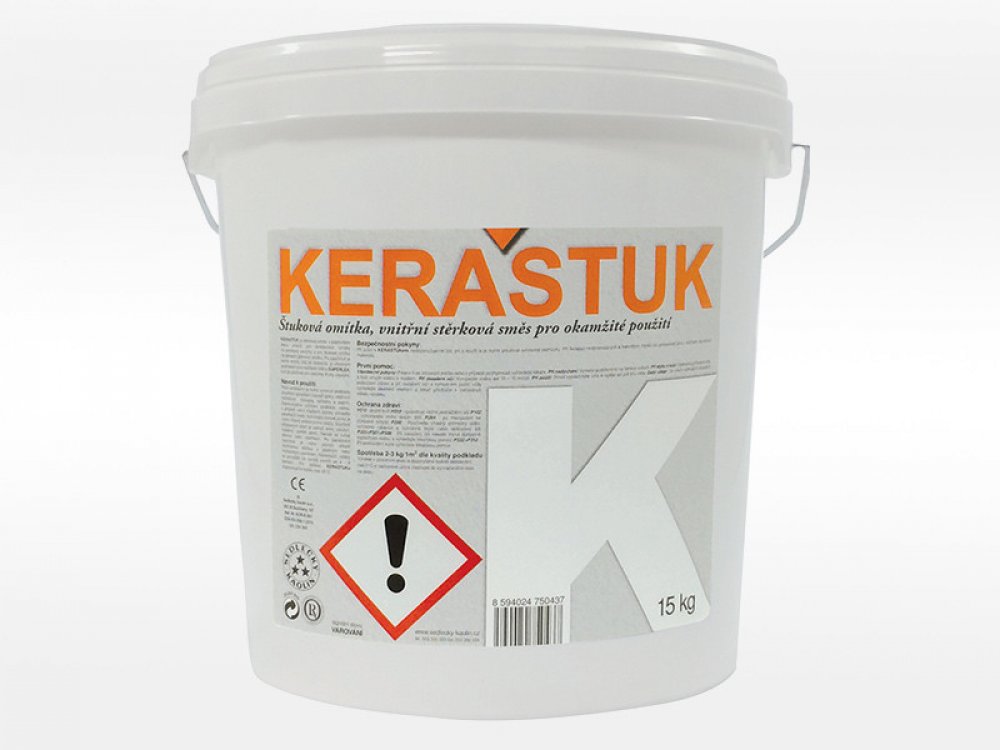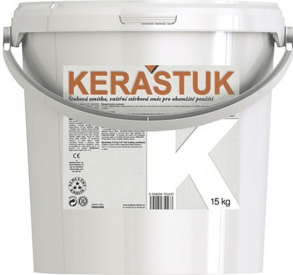 Keraštuk K je tekutá omítková směs obsahující jemný křemičitý písek, vápno, hydraulické a organické pojivo, plavený kaolin a vodu. Je určen jako tenkovrstvá povrchová úprava na panelové povrchy a pro štukové omítky na základní jádrovou omítku. Je připraven pro okamžité použití a lze jej používat pro všechny druhy interiérů. Keraštuk K je po zaschnutí šedobílý, takže další úprava již není nutná, lz...