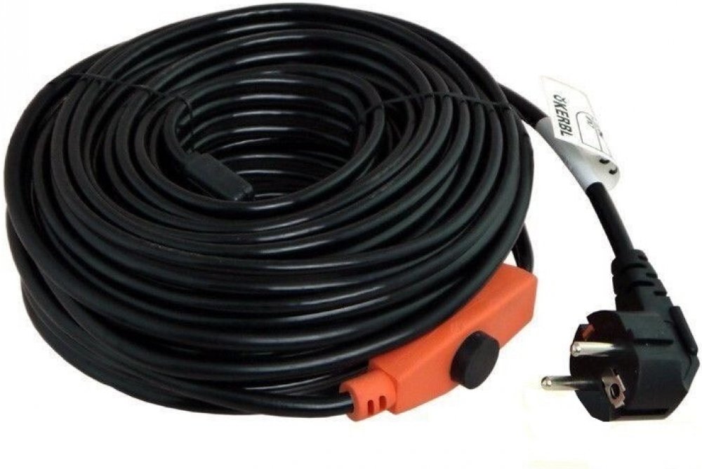 Topný kabel s termostatem, proti zamrzání až do -45°C, pro kovová i plastová potrubí, teplota sepnutí +5°C, teplota vypnutí +13°C, krytí IPX7, testováno VDE, mechanická pevnost M1, napětí 230V, výkon 224W, délka topného kabelu 14m, délka napájecího kabelu 2m.