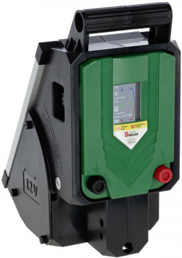 Solární zdroj na 230 / 12 V s výkonem 1 J, se solárním panelem 10 W, s 12V baterií 12 Ah, pro koně, skot, prasata, kozy, drůbež, pro ohrady do 10 km, s LED diodami signalizují provoz, s přepínačem režimů High/Low/Off se spínačem úspory energie, s integrovanou ochranou proti blesku, s robustním vodotěsným krytem, s rukojetí pro přenášení, s inteligentním řízením baterie, s ochranou proti hlubokému vybití, s moderním mikroprocesorem, s rychlou a snadnou instalací, s nízkou spotřebou.