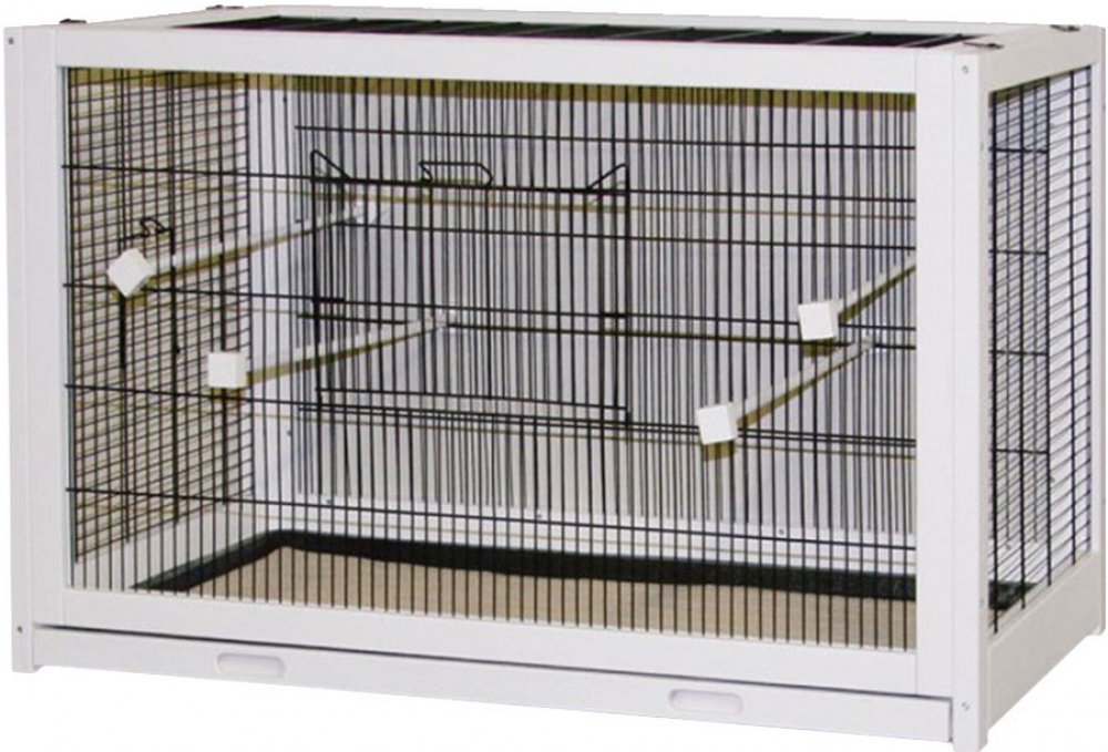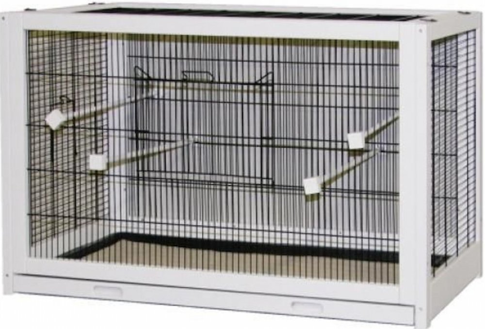 Klec s rozměry 100x50x60 cm má dostatek prostoru pro středního papouška i více menších ptáčků. Je vyrobena z odolného smrkového dřeva, které je navíc chráněno nátěrem v atraktivní bílé barvě a může tak zdobit Váš byt nebo dům.